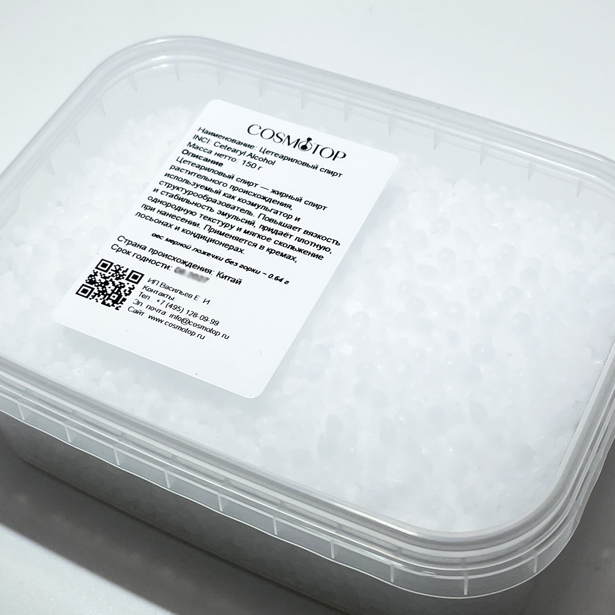 Цетеариловый спирт (Cetearyl Alcohol) — жирный спирт, представляющий собой смесь цетилового (C16) и стеарилового (C18) спиртов. Используется как структурообразователь, загуститель и коэмульгатор в кремах, лосьонах, кондиционерах и других косметических продуктах. Придаёт эмульсиям плотность, улучшает стабильность и повышает сенсорные свойства. Образует на коже мягкую, шелковистую плёнку без ощущения жирности.