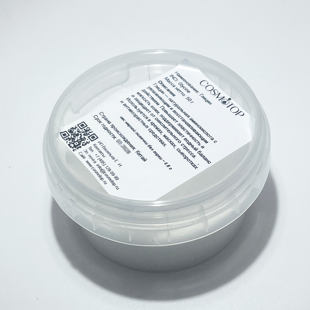 Глицин (Glycine) — самая простая аминокислота, встречающаяся во всех белках организма. В косметике используется как увлажняющий, антиоксидантный и успокаивающий компонент. Улучшает гидратацию кожи, способствует восстановлению клеток и защищает их от окислительного стресса. Обладает мягким кондиционирующим действием, делает кожу и волосы гладкими и эластичными. Применяется в кремах, масках, сыворотках, шампунях, антивозрастных и восстанавливающих формулах.