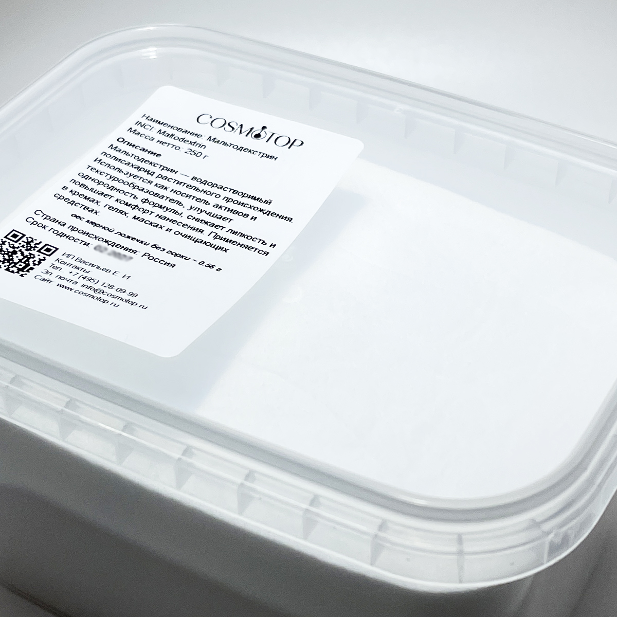 Мальтодекстрин (Maltodextrin) — водорастворимый углеводный полисахарид, получаемый из крахмала растительного происхождения. В косметике используется как вспомогательный функциональный компонент: носитель активов, стабилизатор, текстурообразователь и связующее вещество. Улучшает распределение и стабильность формул, снижает липкость, повышает сенсорный комфорт. Часто применяется как матрица для сухих экстрактов и порошковых активов, а также в гелях, кремах и очищающих средствах.