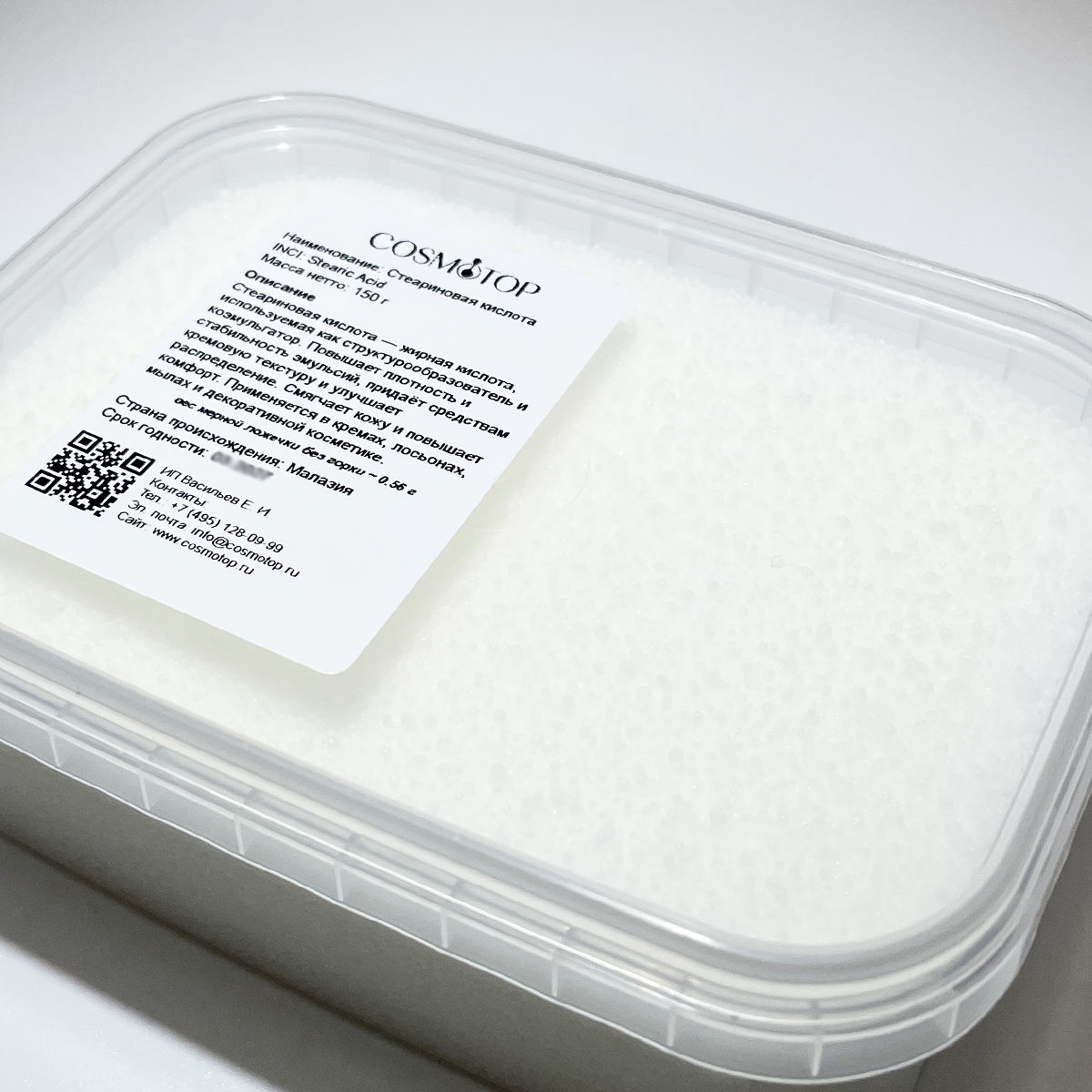 Стеариновая кислота (Stearic Acid) — насыщенная жирная кислота, широко применяемая в косметике как структурообразователь, коэмульгатор и регулятор консистенции. Улучшает стабильность эмульсий, повышает плотность и вязкость формул, придаёт средствам кремовую, устойчивую текстуру. Обладает смягчающим действием, снижает трансэпидермальную потерю влаги и повышает комфорт кожи. Используется в кремах, лосьонах, мылах, очищающих средствах, декоративной косметике и средствах для бритья.