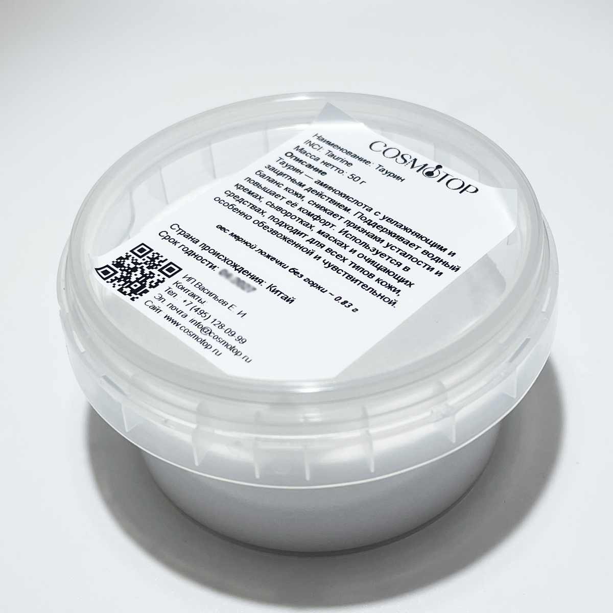 Таурин (Taurine) — серосодержащая аминокислота, естественно присутствующая в коже и волосах. В косметике используется как увлажняющий, защитный и тонизирующий актив. Поддерживает осмотический баланс клеток, повышает устойчивость кожи к стрессу, снижает признаки усталости и обезвоженности. В средствах для волос способствует укреплению структуры, улучшает эластичность и внешний вид. Применяется в уходе за кожей лица и тела, а также в шампунях, сыворотках и антивозрастных формулах.